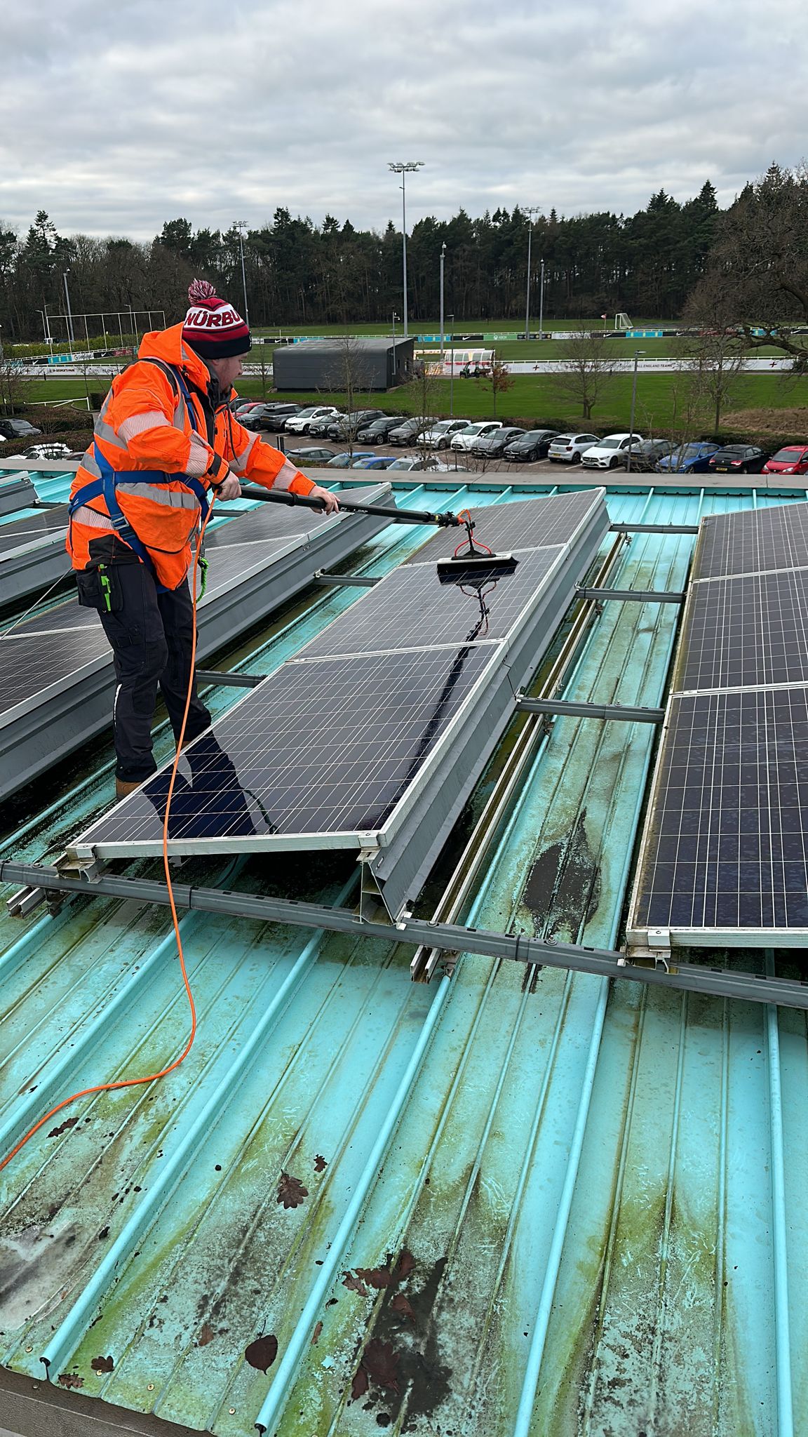 By regularly maintaining and cleaning the solar PV panels at St. George’s Park, Solarcrown helps maximise energy production, contributing to the facility’s sustainability goals and overall operational efficiency. Clean panels also extend the lifespan of the solar PV system, reducing the need for costly repairs or replacements in the long run. Additionally, by harnessing clean energy efficiently, St. George’s Park can further demonstrate its commitment to environmental stewardship and sustainability, setting an example for other institutions and businesses to follow.